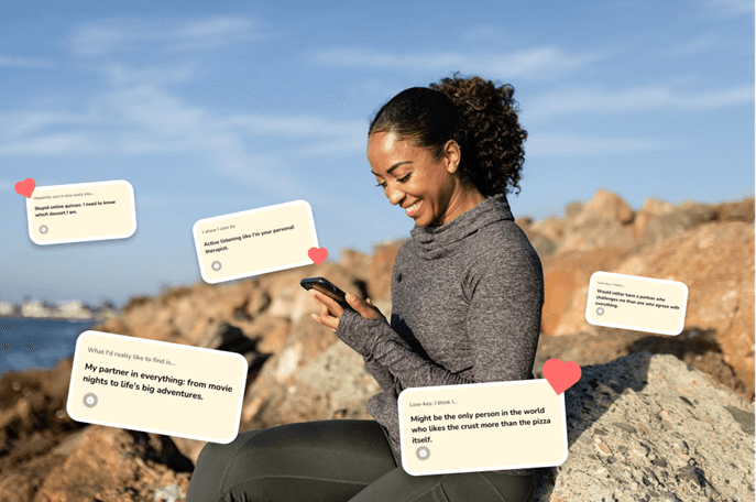 Structured prompts, multimedia elements like voice and video responses, and personalized recommendations create a more dynamic, engaging profile experience.