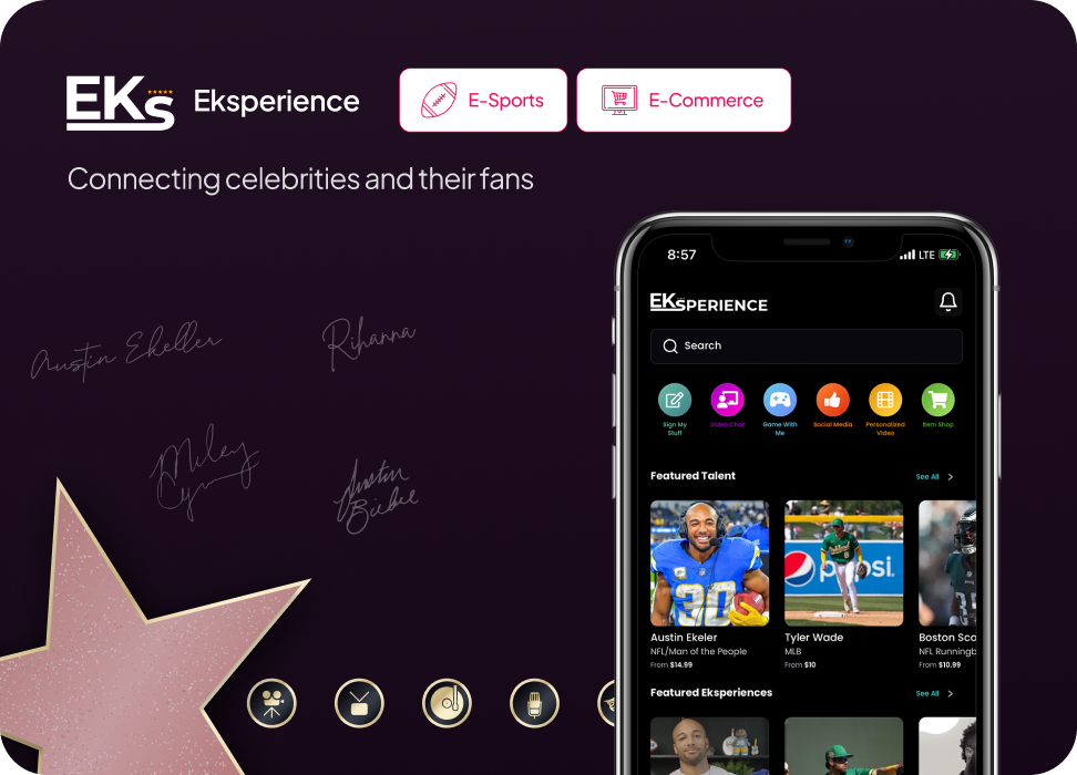 Founded by NFL player Austin Ekeler, Eksperience required a platform to connect celebrities with their fans. AppMakers USA developed a comprehensive custom app that allows users to purchase signed merchandise, engage in online gaming sessions, and receive personalized messages from celebrities.